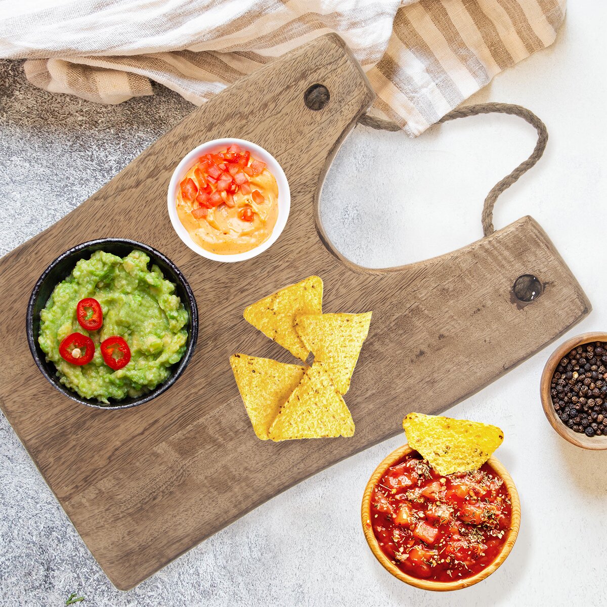 Kód produktu 126841Kuchyňské prkénko z mangového dřeva s jutovým provázkem, o velikosti 40x28 cm, je vhodné ke stylovému servírování snídaně, večeře i drobných pochutin. Poslouží i jako stylová dekorace.