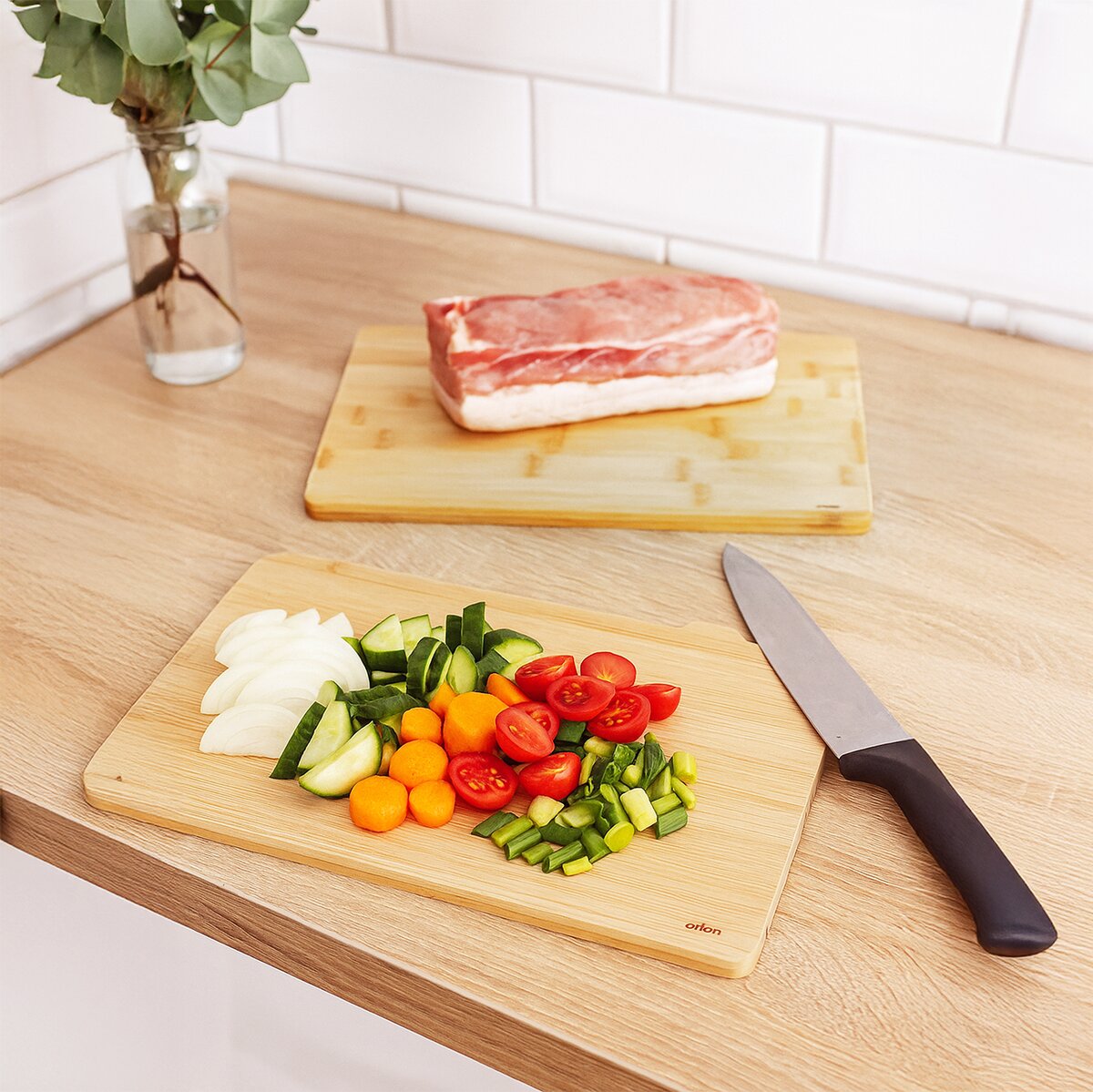 Je výhodné mít při vaření prkénka rozdělená na krájení zeleniny, syrového masa, tepelně upravených pokrmů a ryb. Všechna 4 prkénka o velikosti 28x20,3/22x1 cm pohodlně uložíte do stojanu a můžete je mít na kuchyňské lince vždy při ruce.