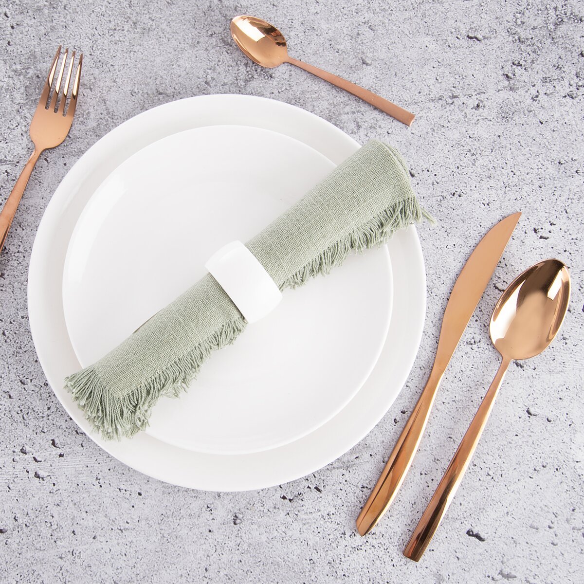 Bílý kroužek na ubrousky je praktický pomocník, jak efektně uložit látkový ubrousek na talíř. Působí elegantně a nabízí různé způsoby naaranžování papírových nebo textilních ubrousků. Je ideální pro slavnostní příležitosti i každodenní použití.