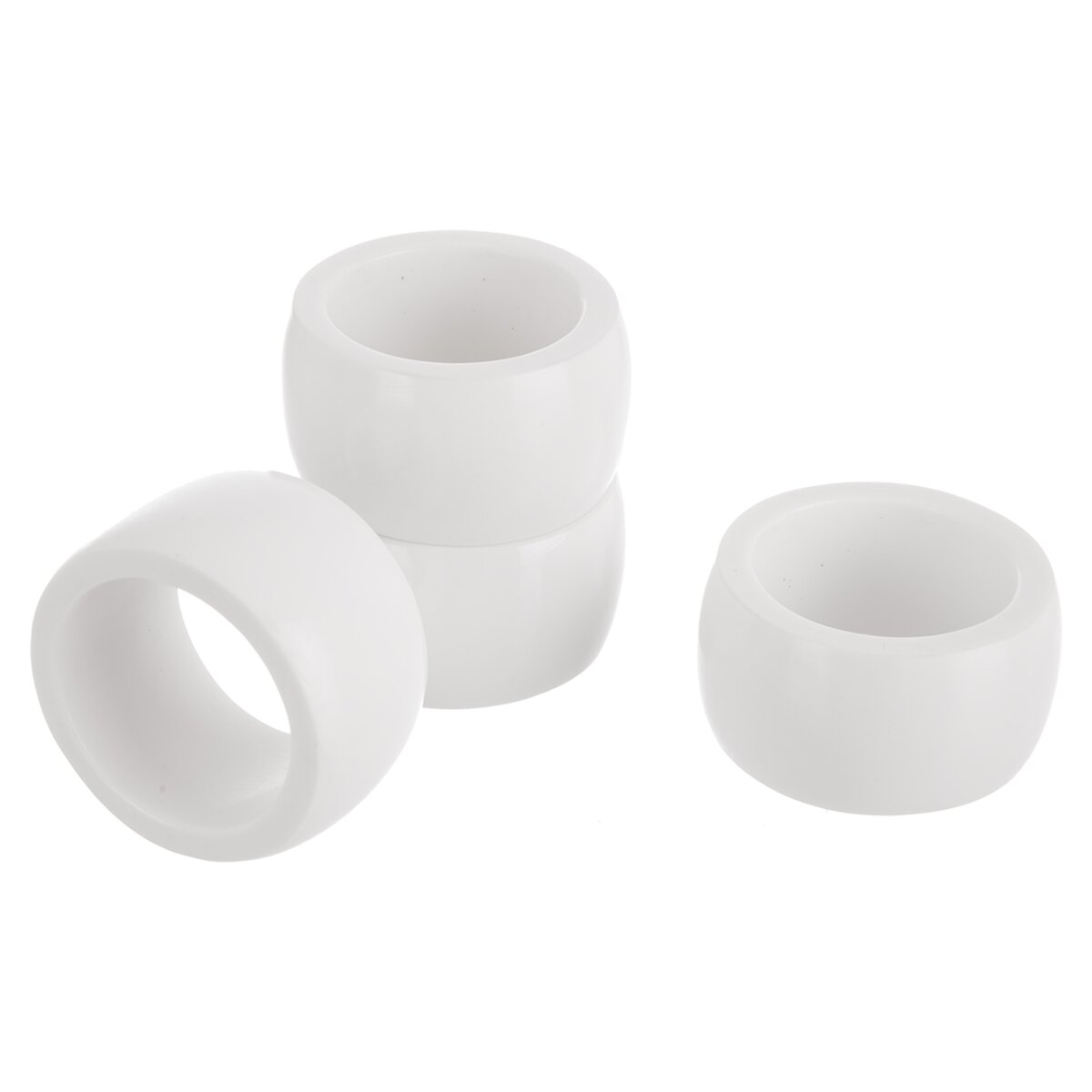 Kód produktu 832804Sada 4 bílých plastových kroužků o průměru 5 cm je určena k elegantnímu uložení, naaranžování ubrousků. Hodí se k běžnému stolování, které oživí, i jako zajímavý prvek na slavnostní tabuli.