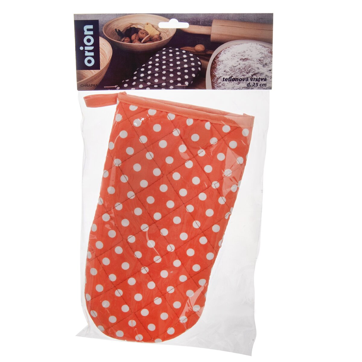 Kód produktu 152150Puntíkovaná kuchyňská chňapka s teflonovou úpravou, magnetem a poutkem pro zavěšení.