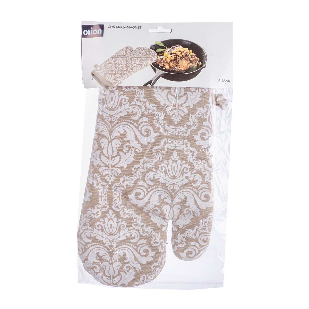 Kód produktu 153926Kuchyňská bavlněná chňapka BEIGE se všitým magnetem a poutkem ochrání ruce při vaření, pečení i grilování, usnadní manipulaci s horkým nádobím.