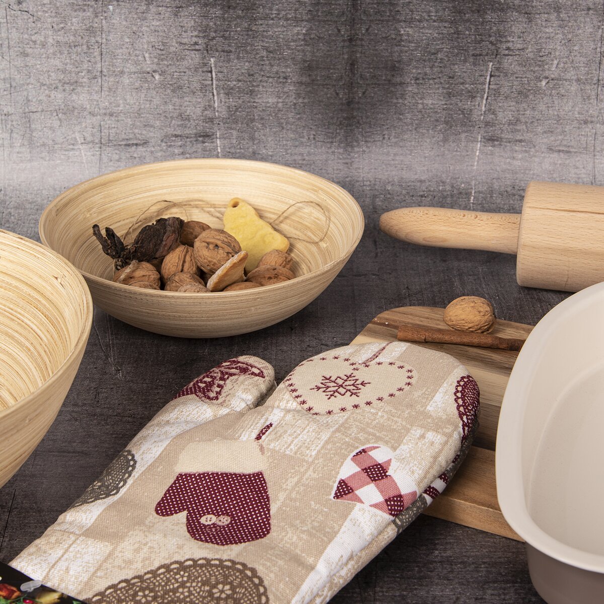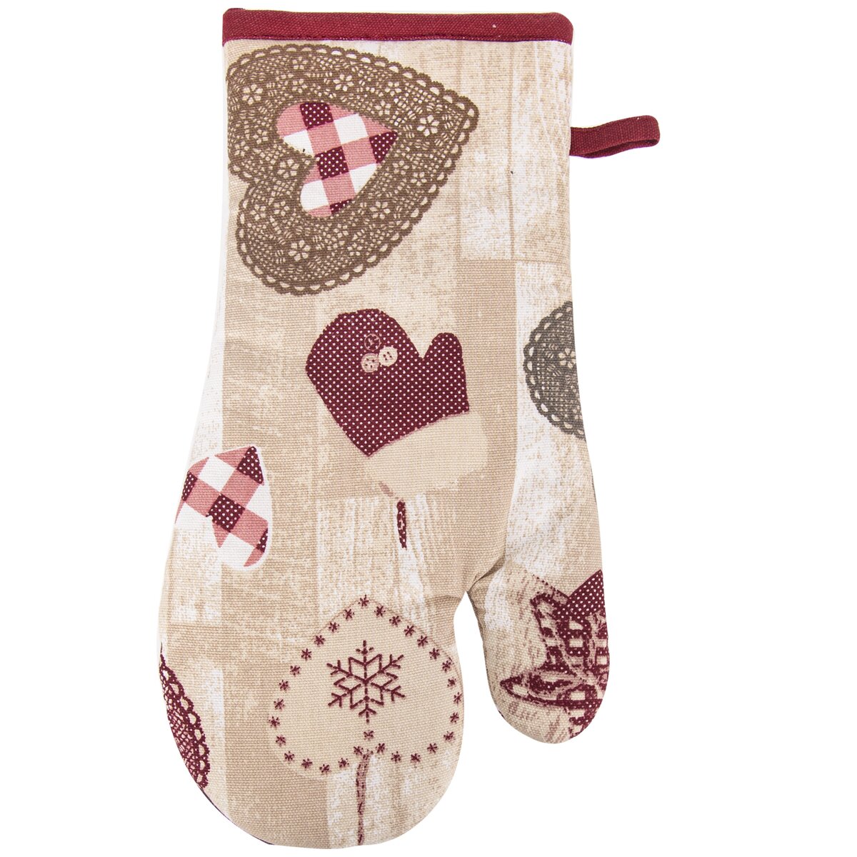 Tato bavlněná rukavice se vzorem srdce v originálním retro stylu vypadá skvěle nejen na chatě a chalupě, ale i v moderní kuchyni. Ladící červené poutko umožňuje její zavěšení, můžete ale využít i vložený magnet, který ji udrží na dvířkách trouby nebo na lednici.