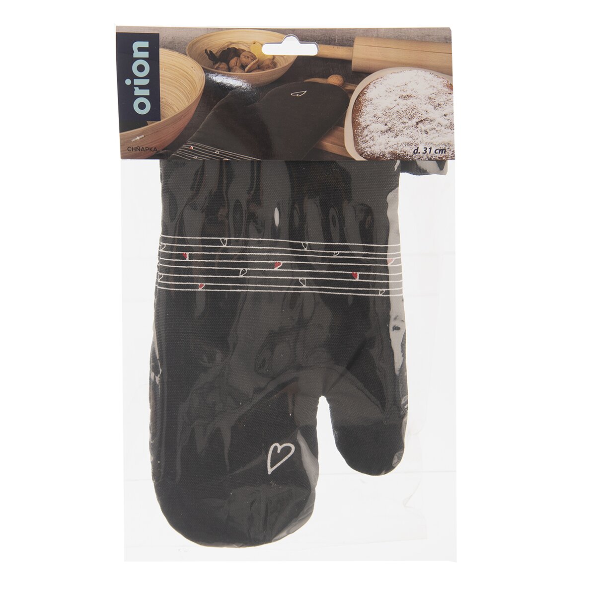 Usnadňuje manipulaci s horkým nádobím na sporáku. Díky své prodloužené délce 31 cm ochrání zápěstí a část předloktí před popálením o rozpálený pekáč nebo plech v troubě. Je vyrobena z bavlny. Ladicí poutko umožňuje její zavěšení, navíc má pod horním lemem všitý magnet, takže drží i na kovových dvířkách trouby nebo lednice.