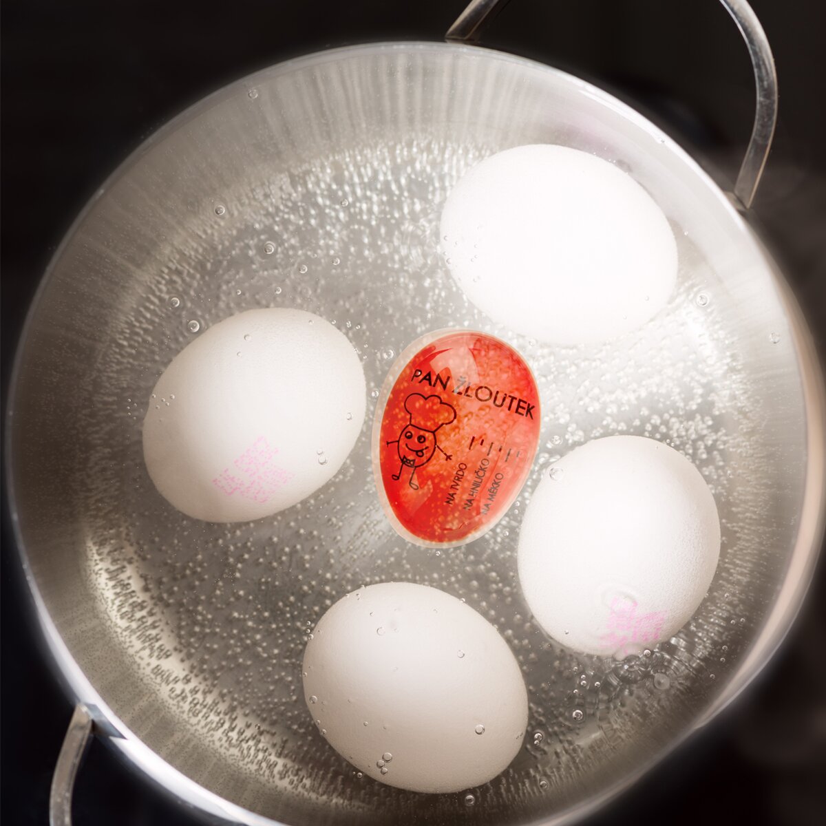 Ať už preferujete vejce natvrdo, naměkko nebo nahniličko, s panem Žloutkem již nebudete muset složitě odhadovat čas k jejich uvaření. Tato drobná vychytávka z pryskyřice slouží jako tepelný indikátor – jeho červená barva ustupuje podle doby strávené ve vařící vodě.