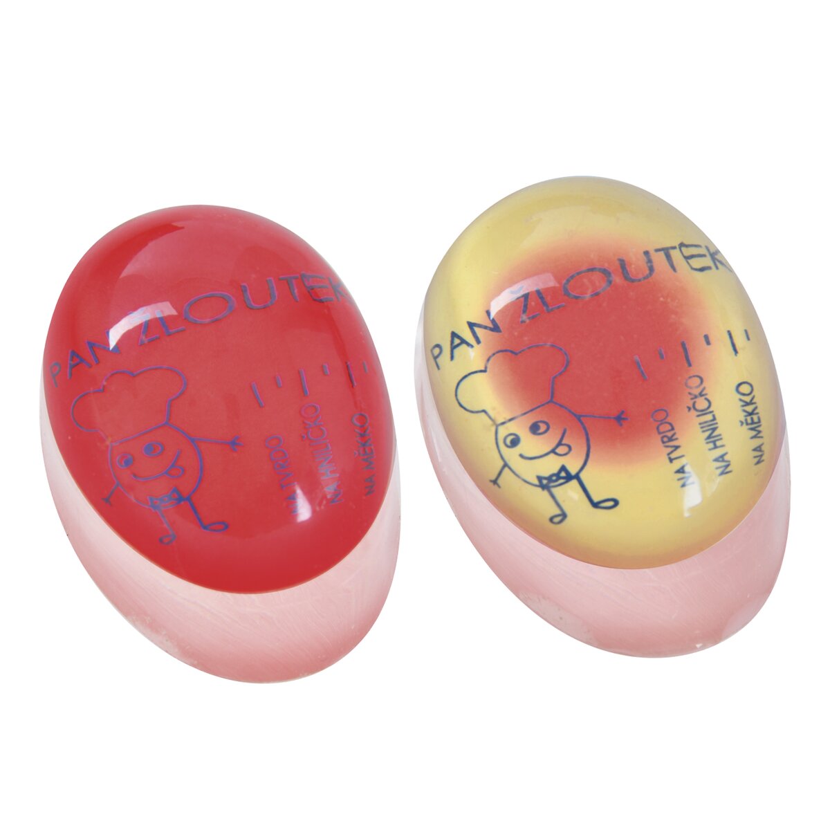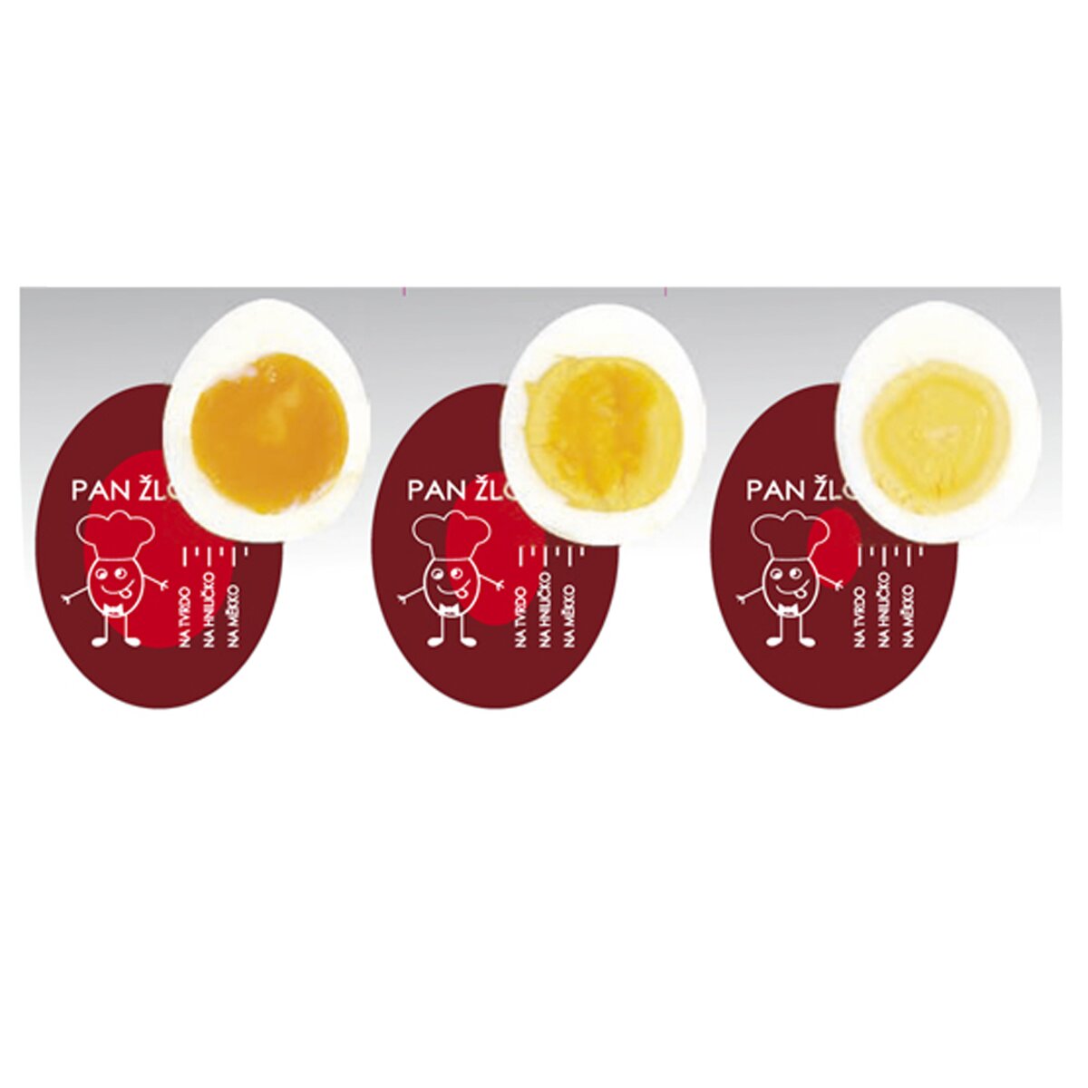Kód produktu 130729Plastová kuchyňská minutka na vejce PAN ŽLOUTEK. Součástí je tepelný indikátor, který poukazuje na aktuální stupeň uvaření vajec.