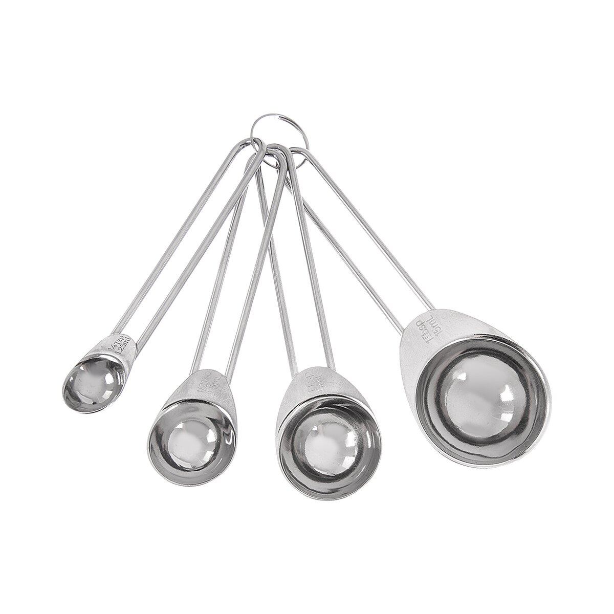 Kód produktu 120560Sada 4 kusů nerezových odměrek pro přesné dávkování menšího množství surovin pro vaření a pečení – 1,25 ml, 2,5 ml, 5 ml a 15 ml.