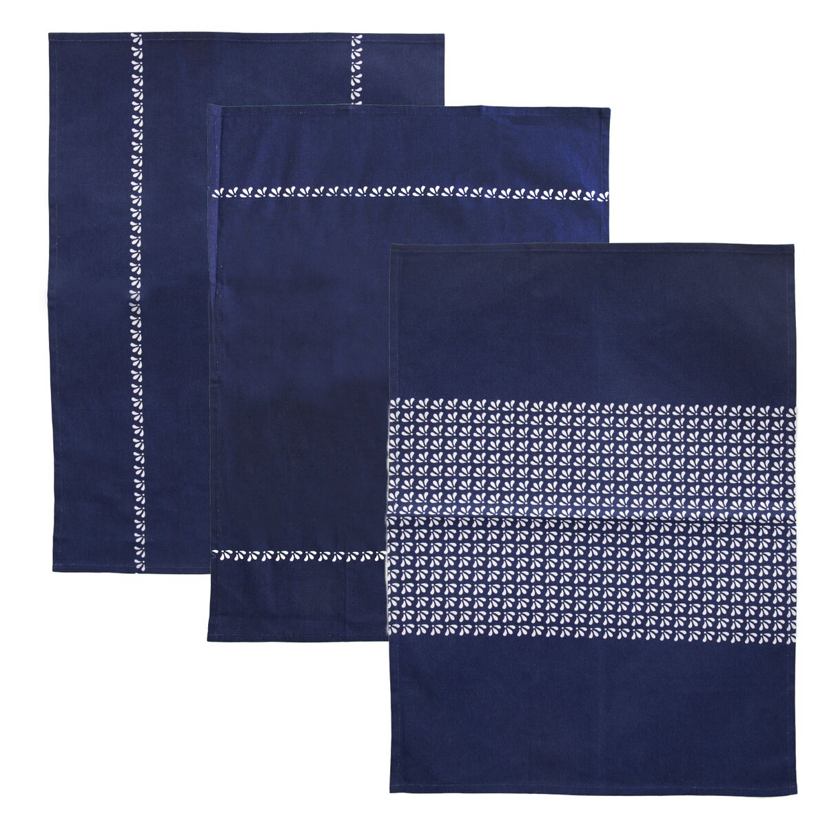 Kód produktu 710971Sada tří kusů bavlněných utěrek na nádobí se vzorem modrotisku.