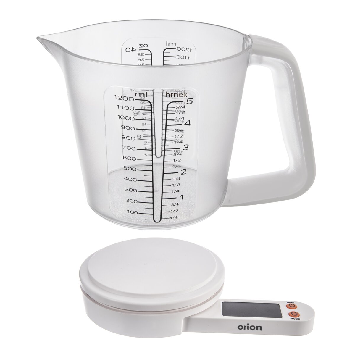 Kód produktu 131815Digitální váha s LED displejem a odnímatelnou odměrkou se stupnicí až do 1,2 l váží suroviny pro vaření a pečení až do 5 kg.