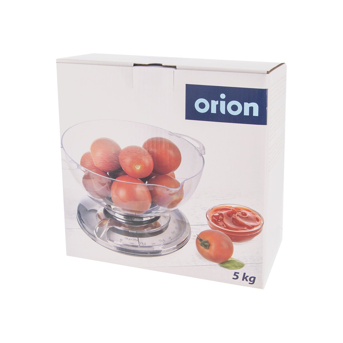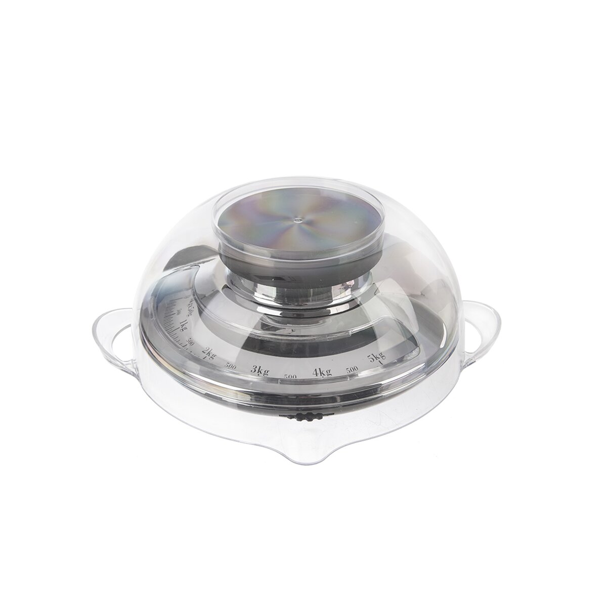 Kód produktu 131814Mechanická plastová kuchyňská váha chromového vzhledu s transparentní odnímatelnou miskou. Je určená pro vážení nejrůznějších objemů v domácnosti až do 5 kg.