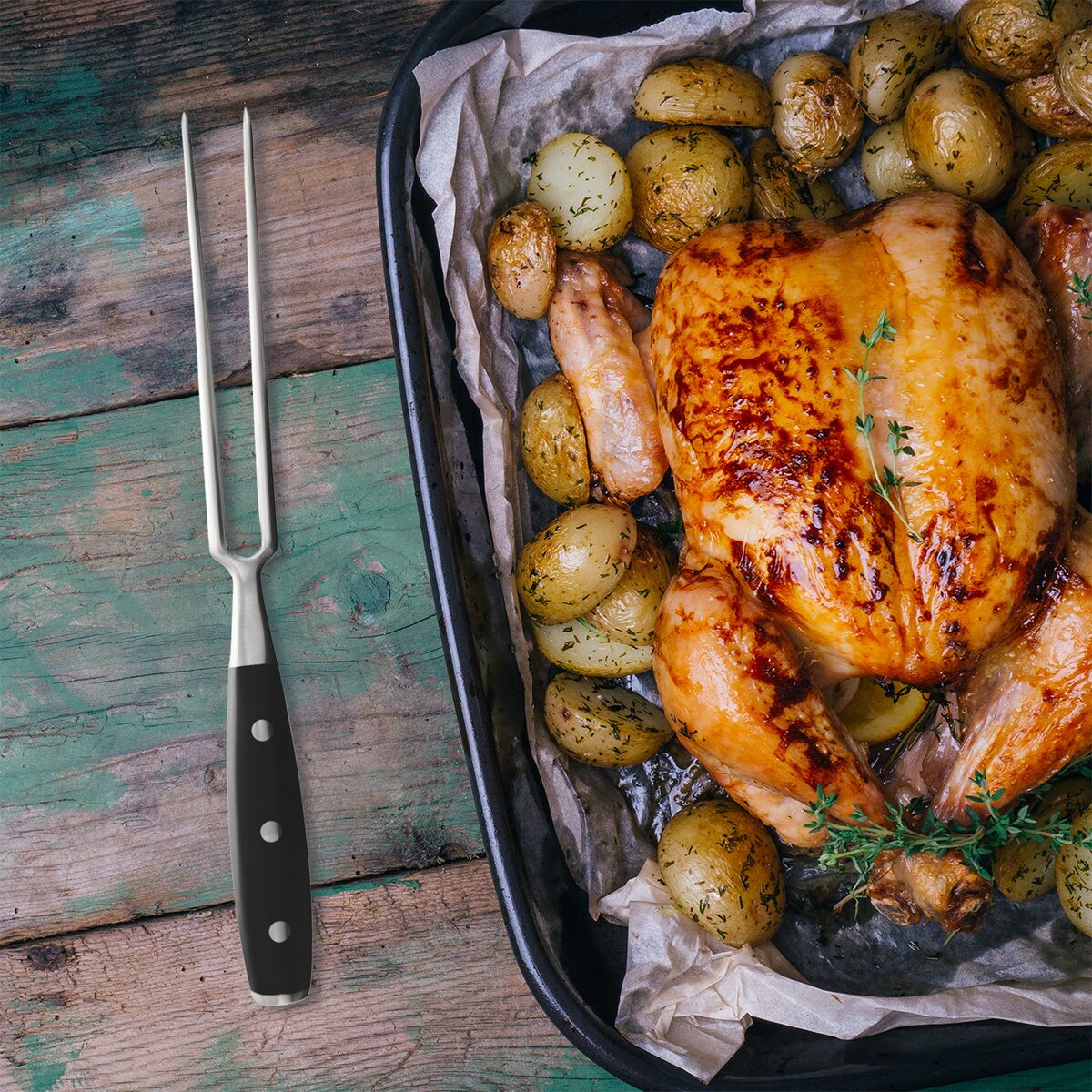 Více informacíKuchyňská vidlice najde v kuchyni široké uplatnění. Lze ji použít pro napichování hotových steaků, pečené drůbeže, při filírování šťavnatých kachních prsou, flank steaku, přenášení pečeně, řepy, kukuřičných klasů a při mnoha dalších úkonech.
