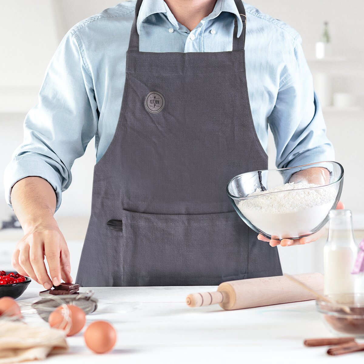 Více informacíAby vaše oblečení zůstalo při přípravě jídla bez jediné skvrnky, pořiďte si moderní bavlněnou kuchyňskou zástěru v tmavě šedé barvě. Má koženkové poutko a velkou kapsu, ve které lze mít při vaření, pečení či grilování schován recept, mobil i brýle.