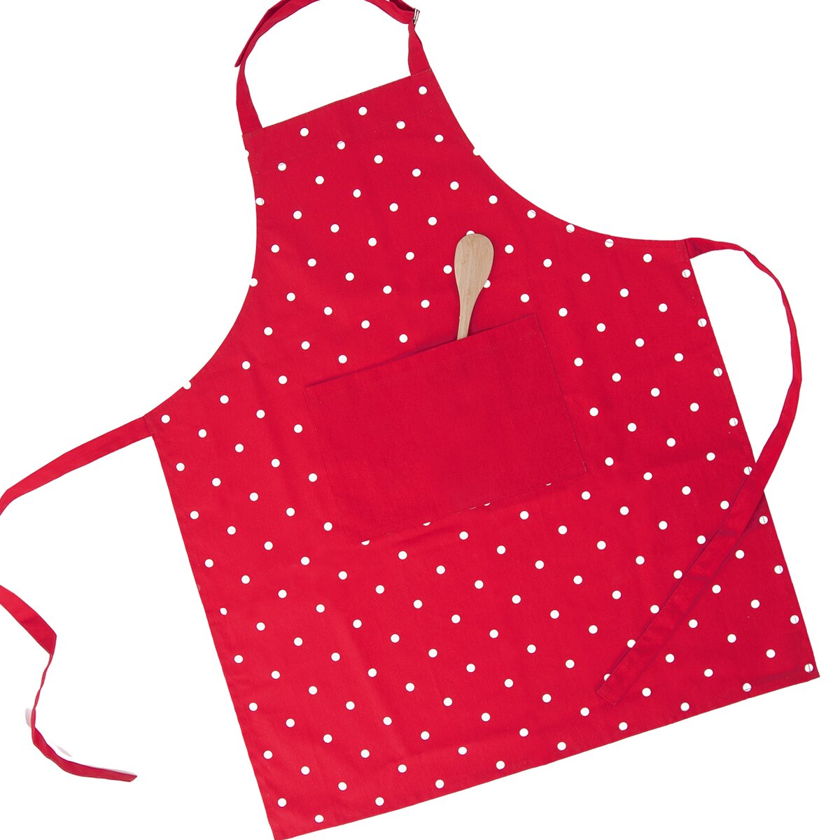 Aby vaše oblečení zůstalo při přípravě jídla bez jediné skvrnky, pořiďte si tuto bavlněnou červenou kuchyňskou zástěru s bílými puntíky. Potěší nejen každého milovníka retro kuchyní nebo venkovského stylu.