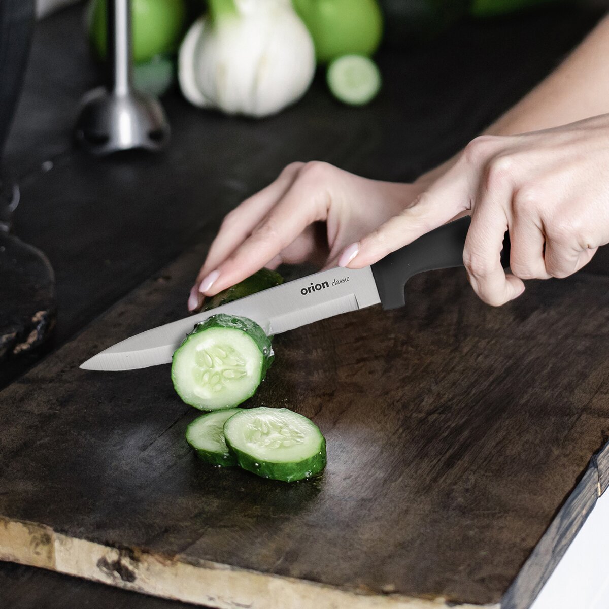 Kód produktu 831151Kuchyňský nůž klasického provedení s délkou nerezové čepele 12,5 cm je vhodný ke krájení ovoce, zeleniny, brambor, pečiva i masa. Pohodlné držení, snadné broušení.