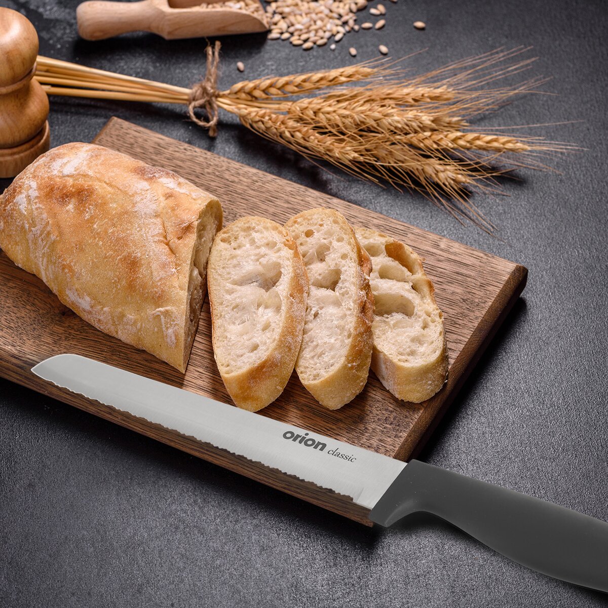 Nůž z řady Classic s délkou čepele 17,5 cm je díky vroubkovanému ostří určen právě ke krájení chleba, baget, rohlíků i housek. Poradí si i s rozkrojením dortového korpusu nebo domácího koláče.
