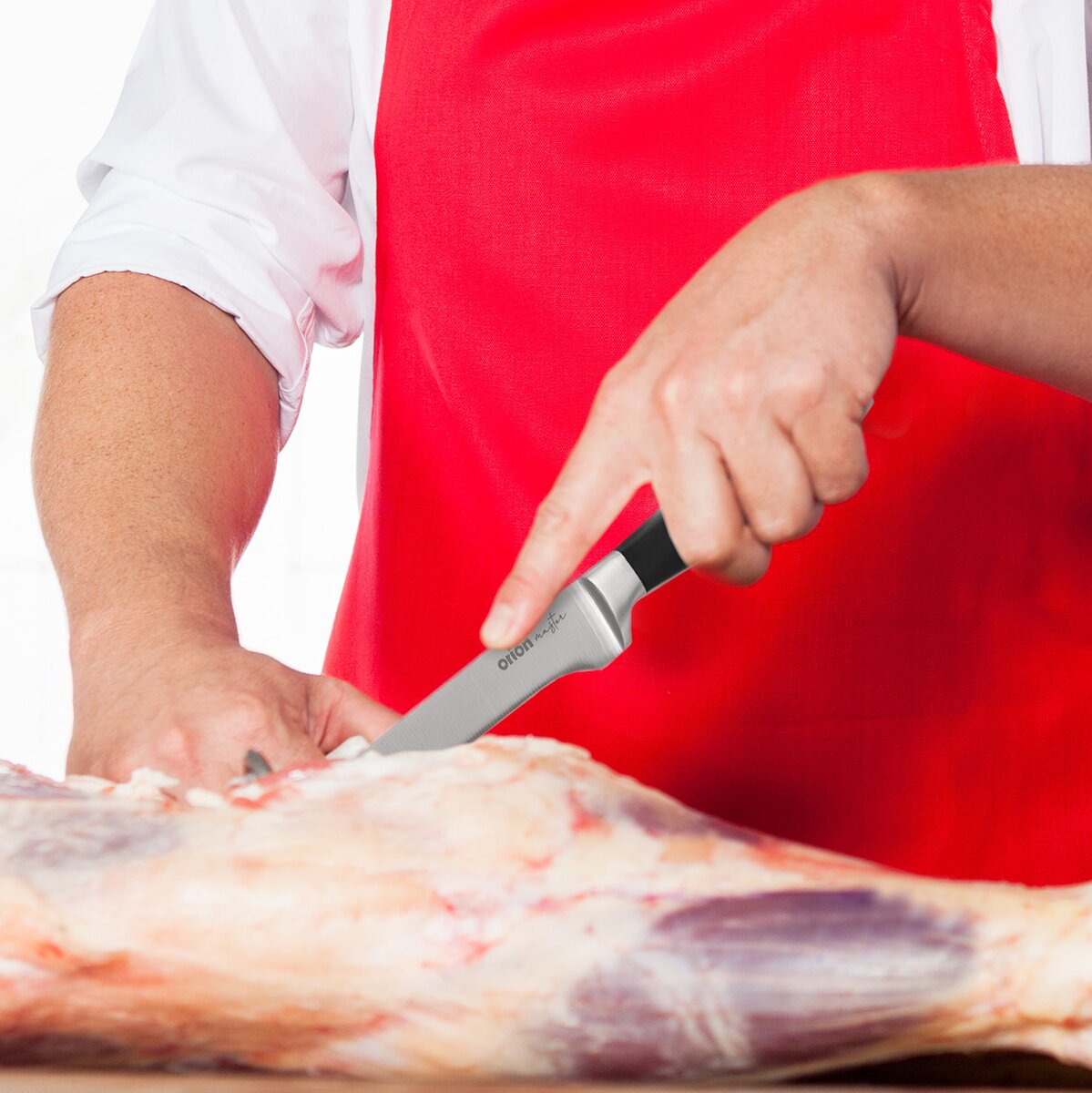 Kód produktu 831171Kvalitní nerezový kuchyňský nůž MASTER s délkou ostří 15,5 cm je všestranným pomocníkem při vykosťování a dalším zpracování masa. Je opatřen syntetickou nýtovanou rukojetí pro pohodlné držení. Snadné broušení.