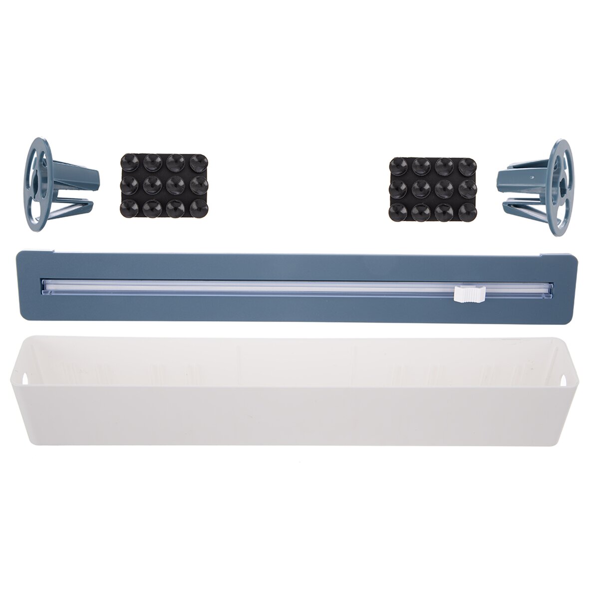 Kód produktu 154063Plastový zásobník s horní modrou částí je opatřen lištou s řezákem a otvorem, skrz nějž lze prostrčit alobal, pečicí papír nebo potravinářskou fólii a dle potřeby odříznout. Lze jej připevnit přísavkami na hladkou stěnu nebo uložit do zásuvky.