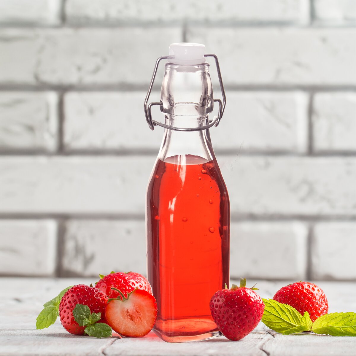 Má praktický pákový uzávěr a kvalitní silikonové těsnění, což zajistí, že ani kapka nápoje nepřijde nazmar. Naplněná vaším domácím výtvorem poslouží i jako krásný dárek pro vaše nejbližší nebo jako svatební pozornost pro pozvané hosty.