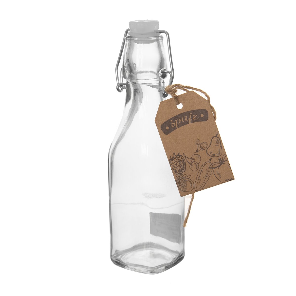 Tato menší stylová láhev z čirého skla zaujme svým hranatým tvarem. Má objem 290 ml a hodí se především na domácí pálenky, likéry či sirupy a ochucené oleje.