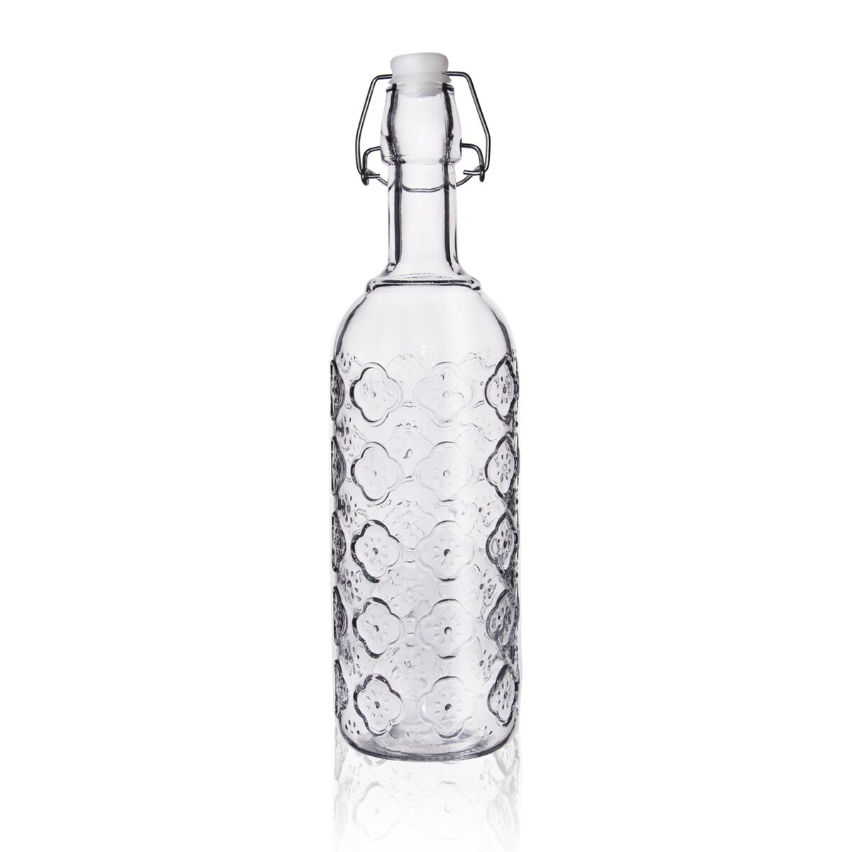 Tato skleněná láhev CLIP zaujme především svým něžným plastickým dekorem, který z ní dělá i stylový interiérový doplněk.