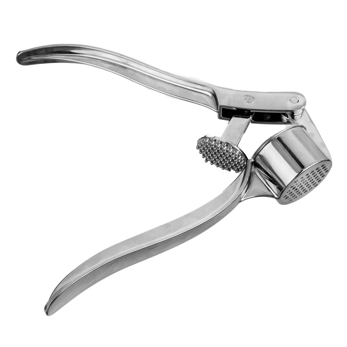 Kovový lis na česnek nahradí pracné tření česneku nožem. Stačí vložit oloupaný stroužek česneku a tlakem, stiskem rukojetí, dojde k prolisování stroužku skrz otvory. Do polévky, pomazánky i bramboráků.