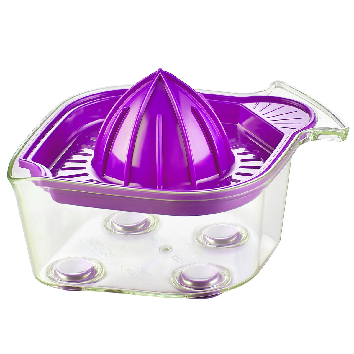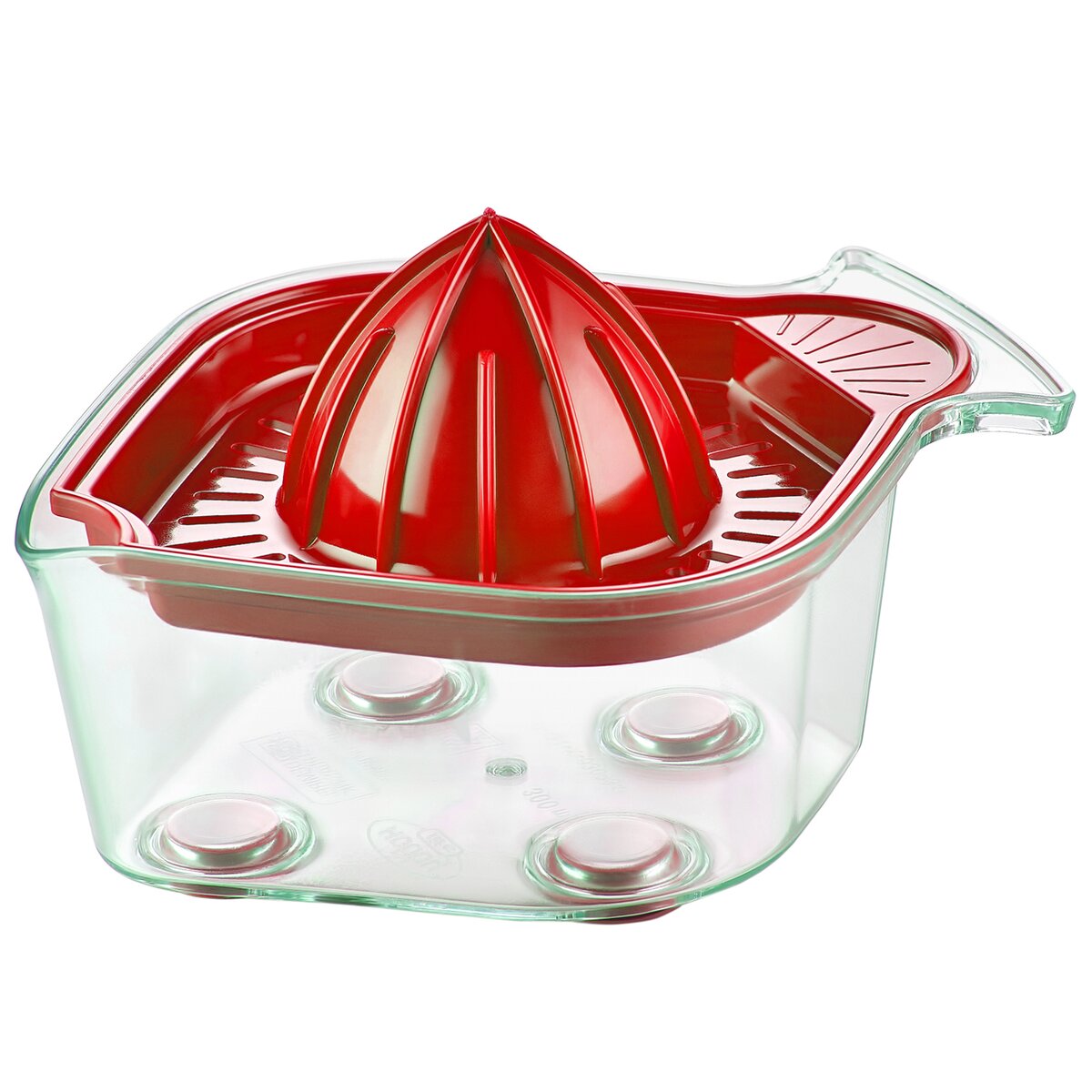 Kód produktu 141773Plastový lis na citrusy o objemu nádoby 0,3 l, s horním dílem s výlevkou, umožňující snadné vymačkání šťávy z citrusů.