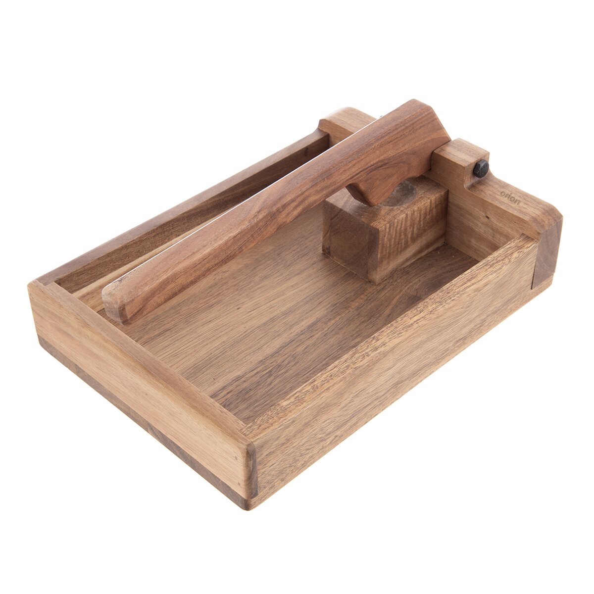 Tělo je vyrobeno z odolného akáciového dřeva, které je známé svou pevností a krásnou kresbou. Po použití jej stačí otřít vlhkým hadříkem a nechat uschnout. Není vhodný do myčky – dřevo by se mohlo poškodit. Uložte ho na suchém místě spolu s ostatními kuchyňskými pomocníky.