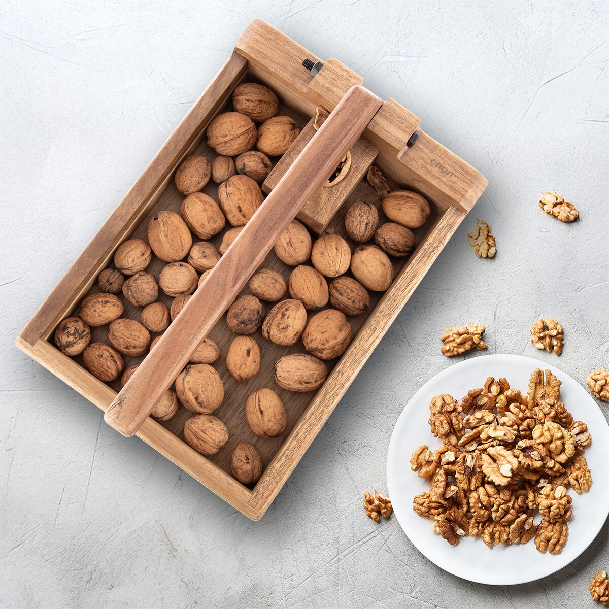 Více informacíSe snadnějším louskáním vlašských a lískových ořechů pomůže praktický louskáček s velkou odkládací plochou. Je vyroben z akáciového dřeva a opatřen pákou a důlkem, kam lze oříšek vložit a stlačením páky jej rozlousknout. Při louskání stačí cca 3x jemně zatlačit a ořech se rozlouskne. Díky jednoduchému pákovému systému je to rychlé, bezpečné a nevyžaduje velkou sílu.
