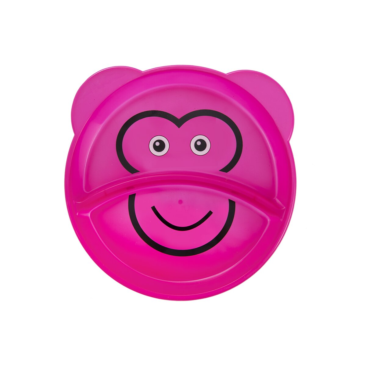 Kód produktu 128273Dětský plastový talíř ve tvaru zvířátka se dvěma oddělenými přihrádkami na jídlo.