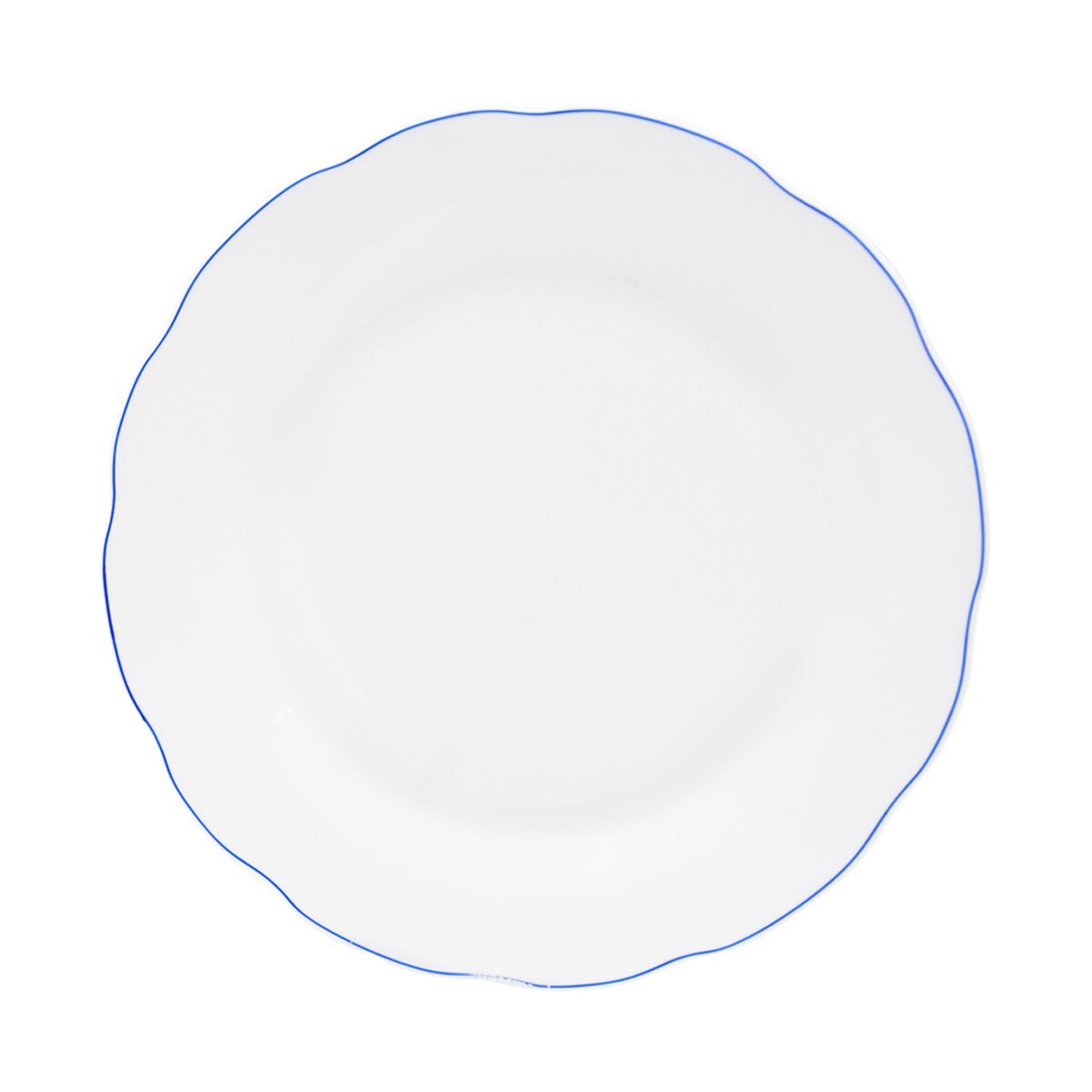 Talíř mělký se zdobeným okrajem - modrá linka. Materiál: porcelán. Rozměry: pr. 26,5 cm.