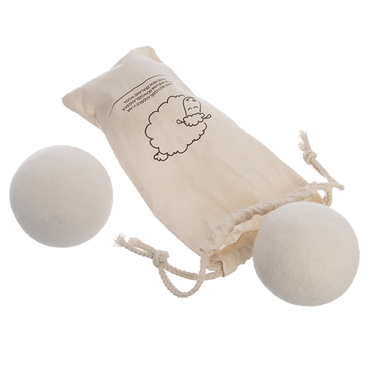 Kód produktu 531719Opakovaně použitelné míčky z ovčí vlny jsou v sadě 3 kusů uloženy v bavlněném sáčku. Při sušení prádla v sušičce zkracují dobu sušení, změkčují prádlo, pohlcují zbytkovou vlhkost atd.
