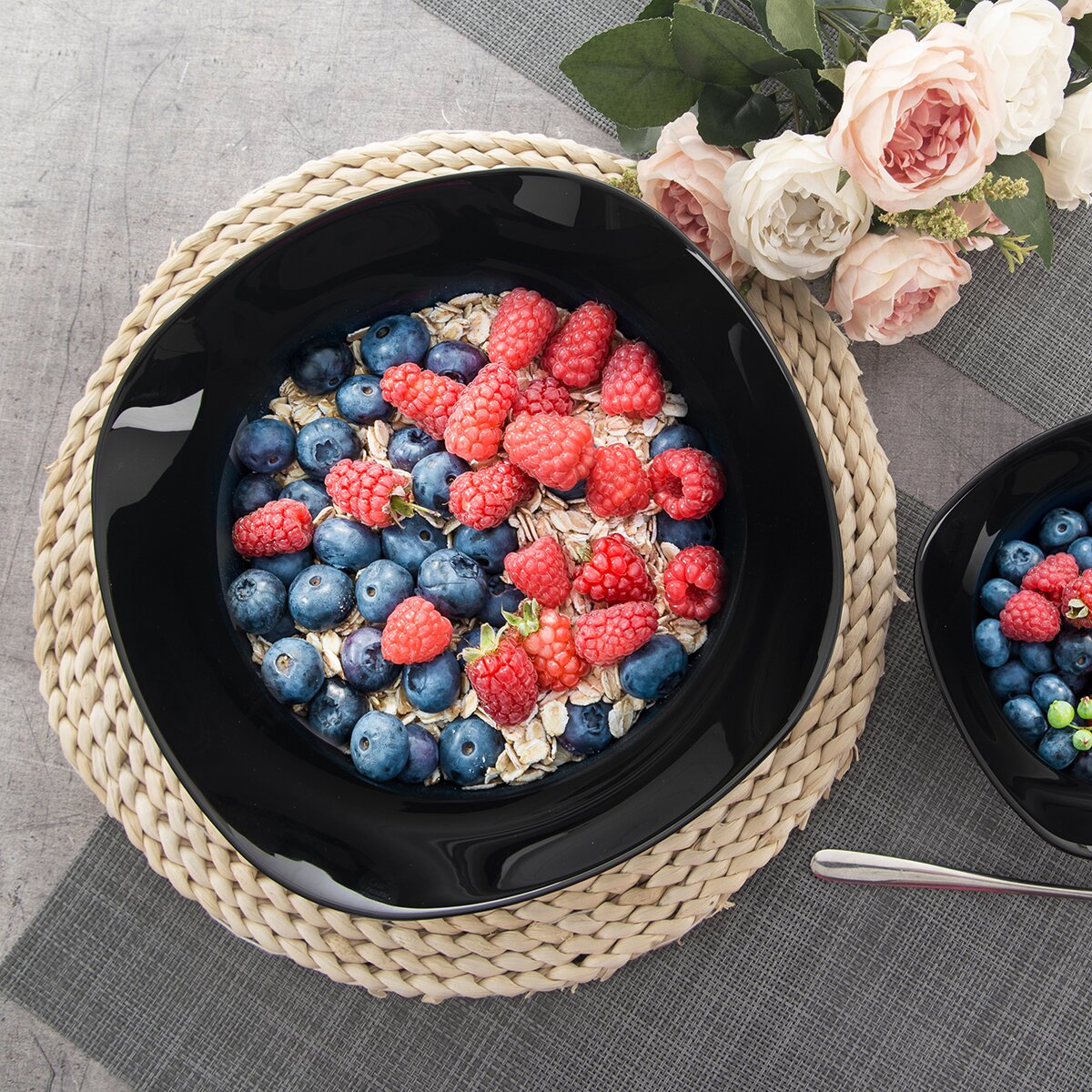 Tato zajímavá mísa z černého opálového skla se hodí k podávání ovocných, zeleninových či těstovinových salátů. A pokud čekáte hosty, lze do ní naservírovat chipsy i popcorn.