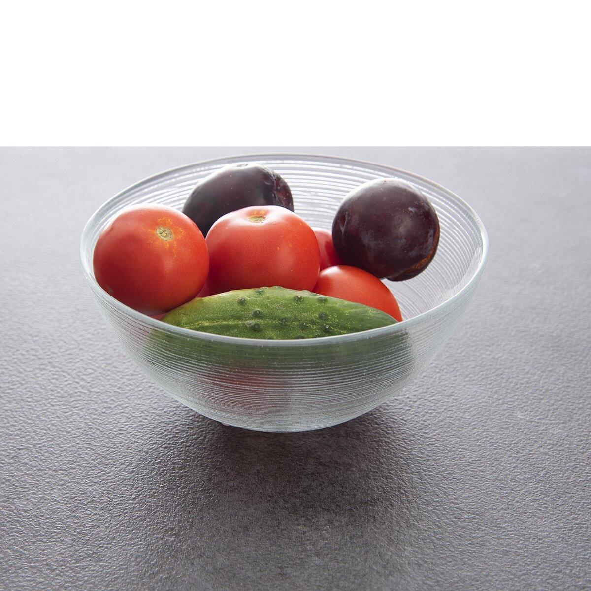 Skleněná miska se zajímavým reliéfem vodorovných pruhů je určena k servírování menších porcí snídaňových kaší, ovocných a zeleninových salátů, jogurtu s cereáliemi, kompotů i zmrzliny.