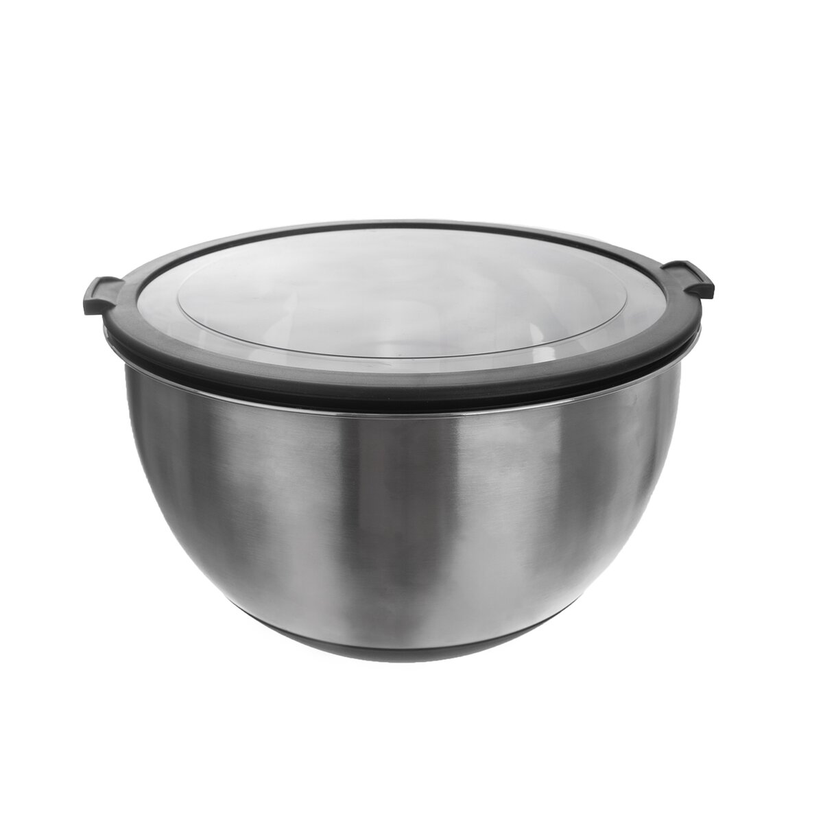 Kód produktu 120292Kvalitní kulatá nerezová mísa objemu 1,65 l, s průhledným plastovým víčkem. Má praktické protiskluzové silikonové dno.