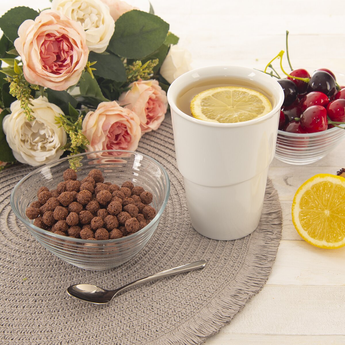 Hodí se na podávání kompotu, jogurtu, nanukového dortu s ovocem, ale i na salát nebo snídaňové cereálie.