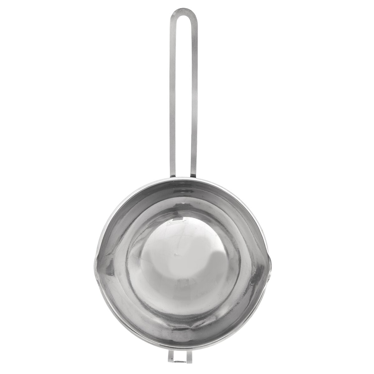 Má delší rukojeť a praktické ouško, díky kterým ji pohodlně a bezpečně umístíte na hrnec s vodou. Výhodou jsou i dvě výlevky pro snadnější manipulaci s obsahem misky. Vnitřní průměr nádoby je 17,5 cm, vnější 18 cm. Lze ji mýt v myčce i zavěsit, celková délka je 35 cm a hloubka 8 cm.