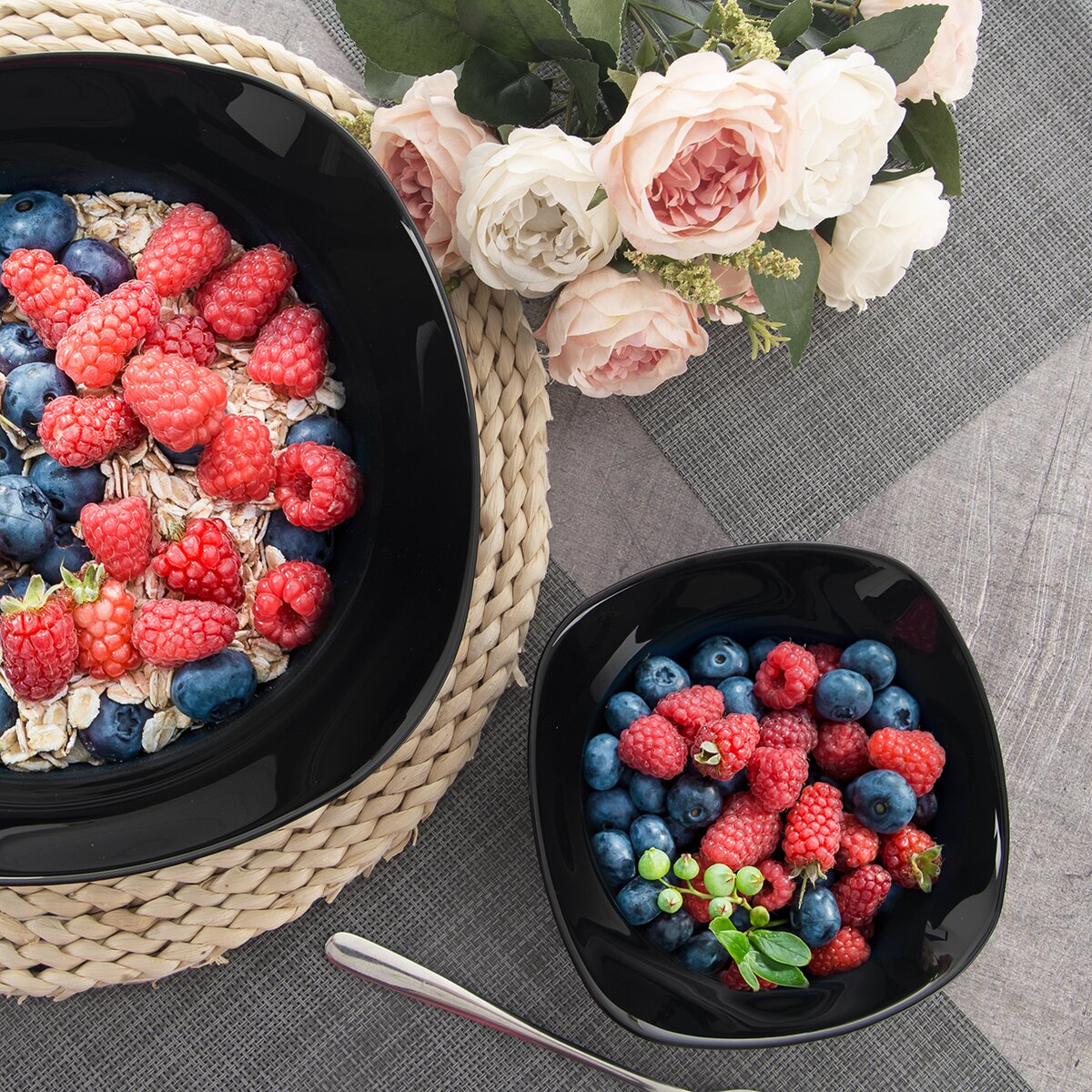 Tato zajímavá miska z černého opálového skla se hodí k podávání salátů, kompotů, snídaňové kaše, cereálií i teplé polévky. A pokud čekáte hosty, lze do ní naservírovat ořechy, chipsy či krekry. Při grilování ji naplňte čerstvou zeleninou nebo pečivem.