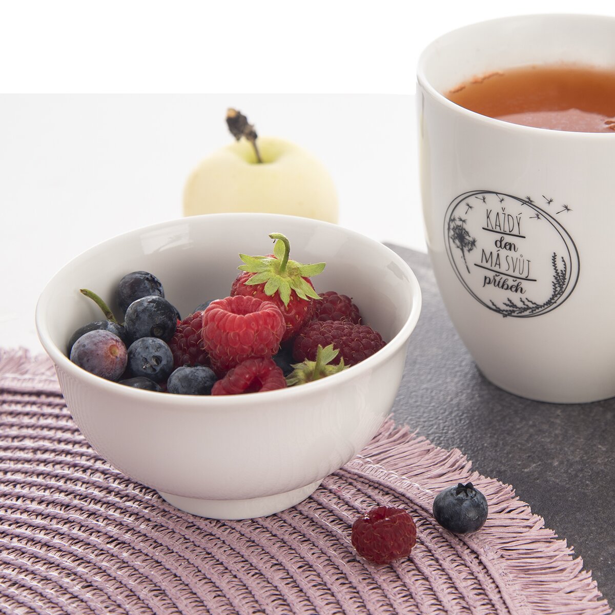 Více informacíBílá miska MONA o objemu 250 ml zaujme především svým jednoduchým stylem. Na stole vypadá elegantně a hodí se k servírování sladkých nebo slaných dobrot, ale i menší porce snídaně jako je ovocný salát, jogurt s ovocem, pudink nebo ovesná kaše.