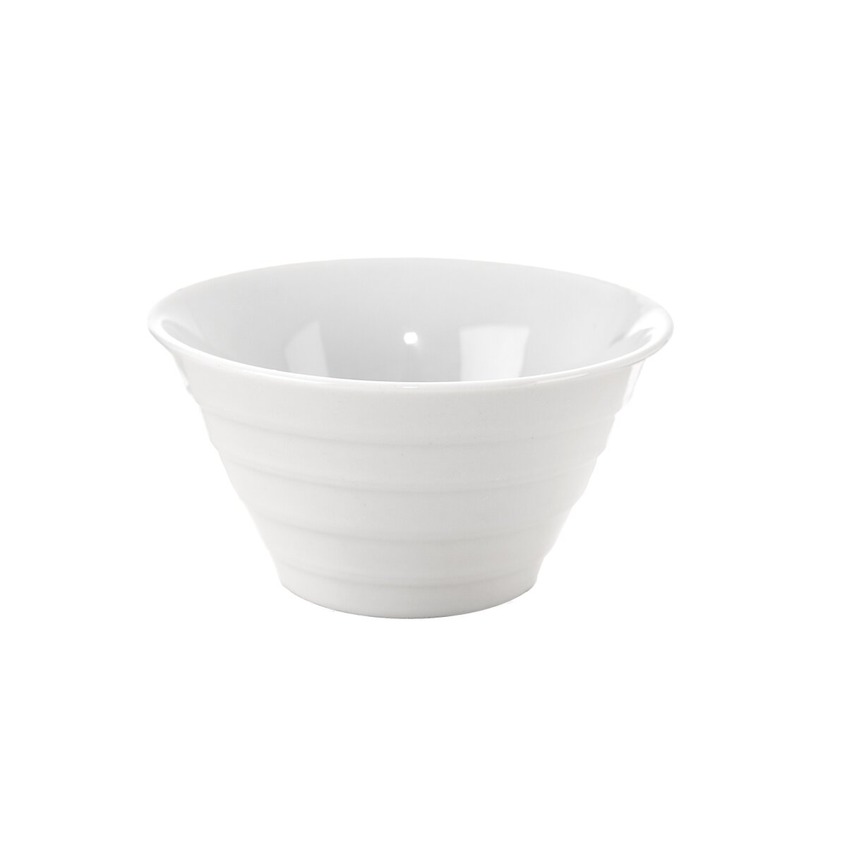 Elegantní kónická miska s plastickým dekorem vodorovných vroubků z vnější strany se hodí na ledacos. Na snídaňové cereálie, čerstvé ovoce, pudink, nadýchanou pěnu i zmrzlinový pohár.