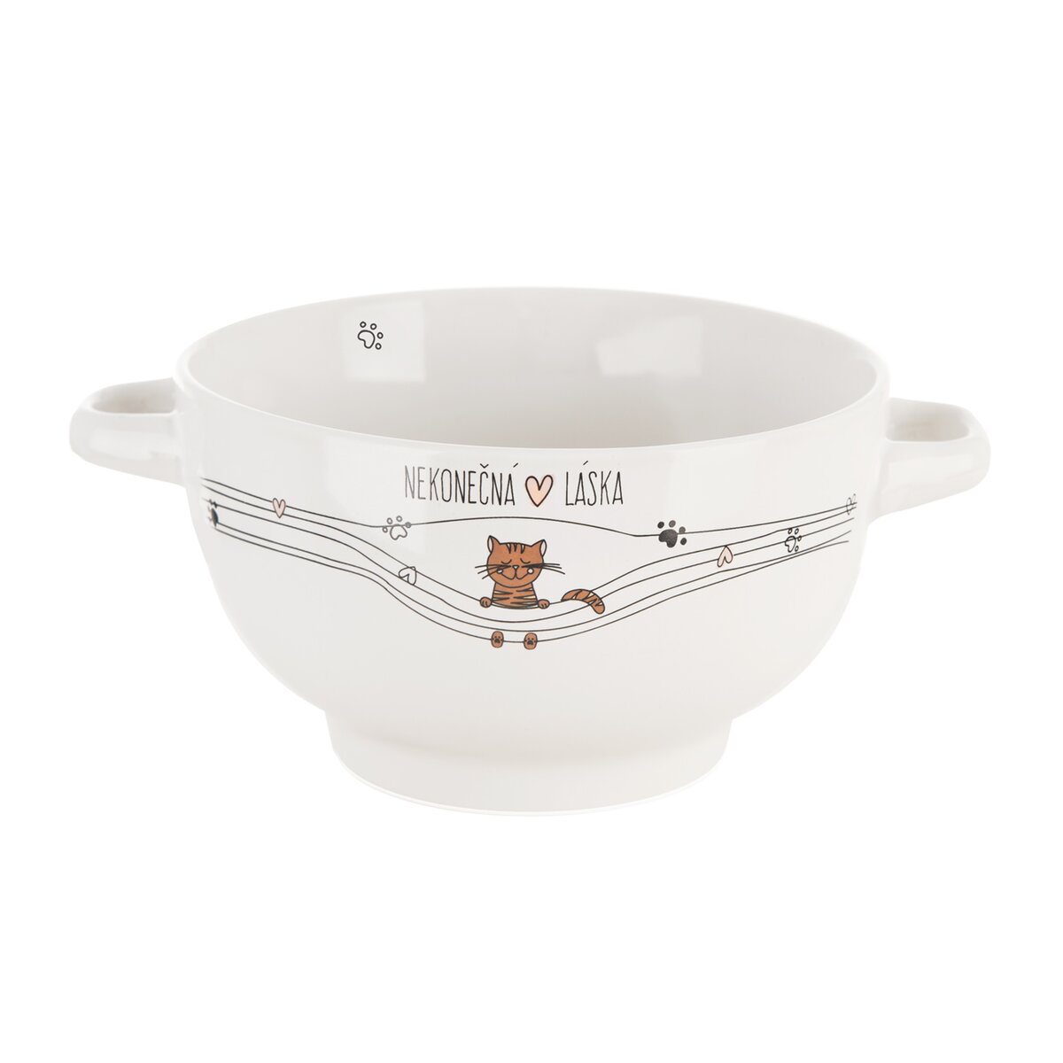 Kód produktu 129204Keramická polévková miska o objemu 0,73 l a dvěma uchy zaujme nápisem NEKONEČNÁ LÁSKA a motivem kočičky.
