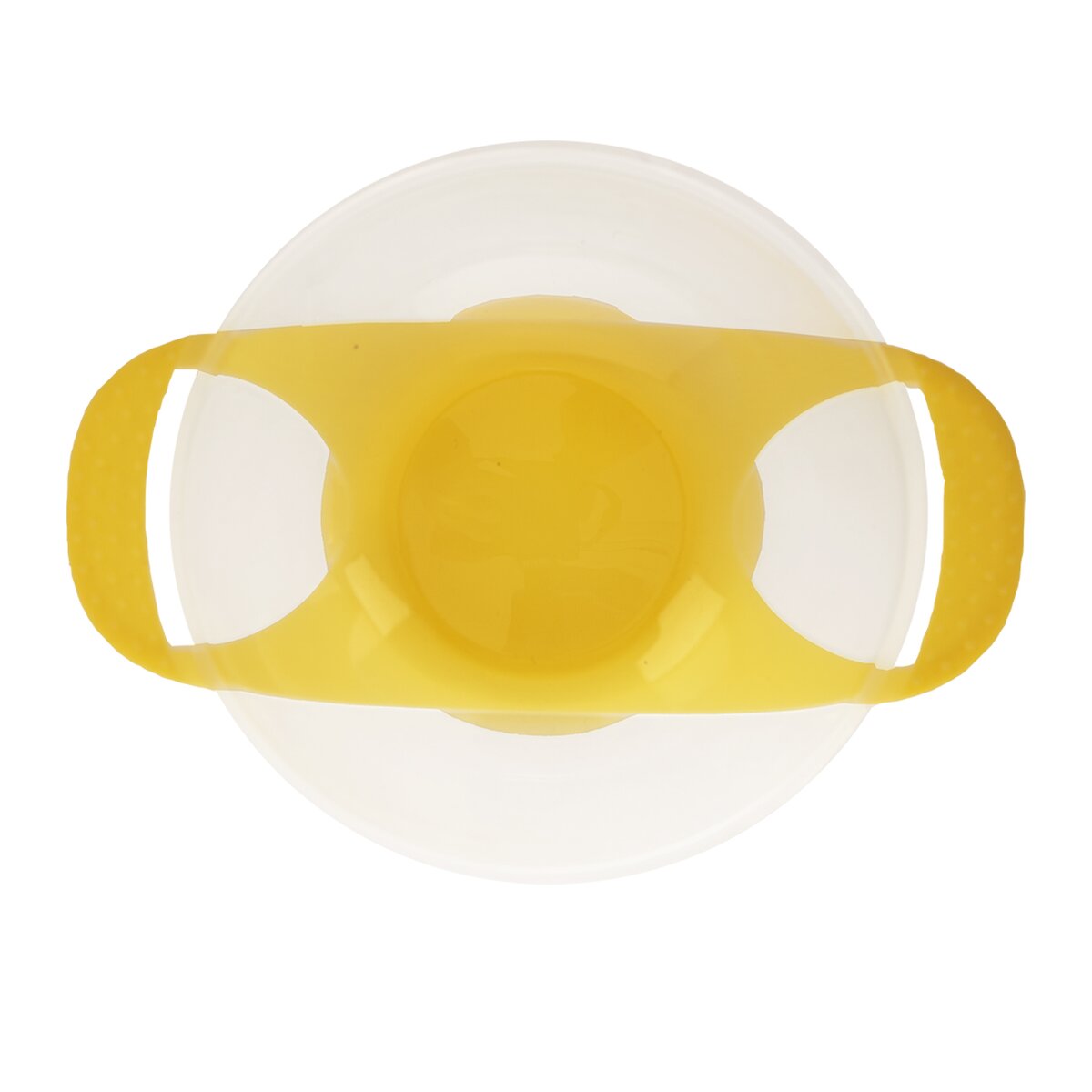 Kód produktu 129802Dětská miska s přísavkou na svačiny a přesnídávky, vyrobená z transparentního plastu se žlutými prvky, bez obsahu BPA. Je opatřena dvěma uchy a praktickou gumovou přísavkou.