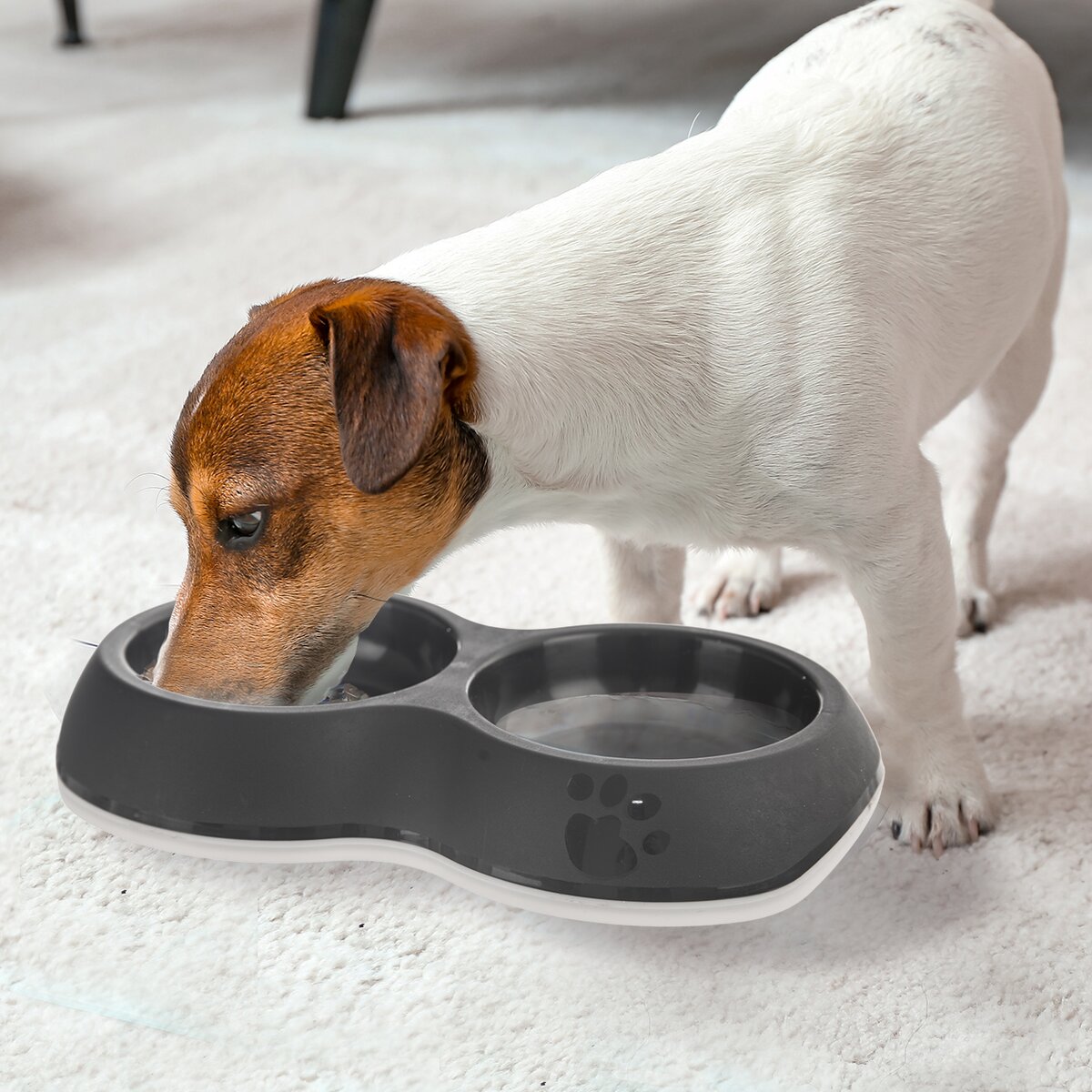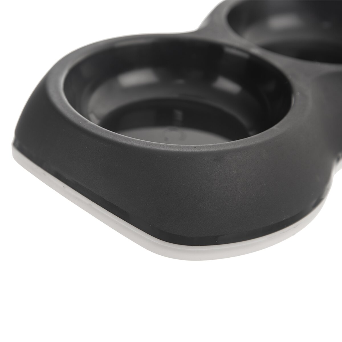 Dvojitá miska pro psy a kočky, kterou ocení zejména chovatelé malých plemen. Je vyrobena z plastu a v dolní části má pás z termoplastické gumy, aby při krmení tolik neklouzala po hladké podlaze.