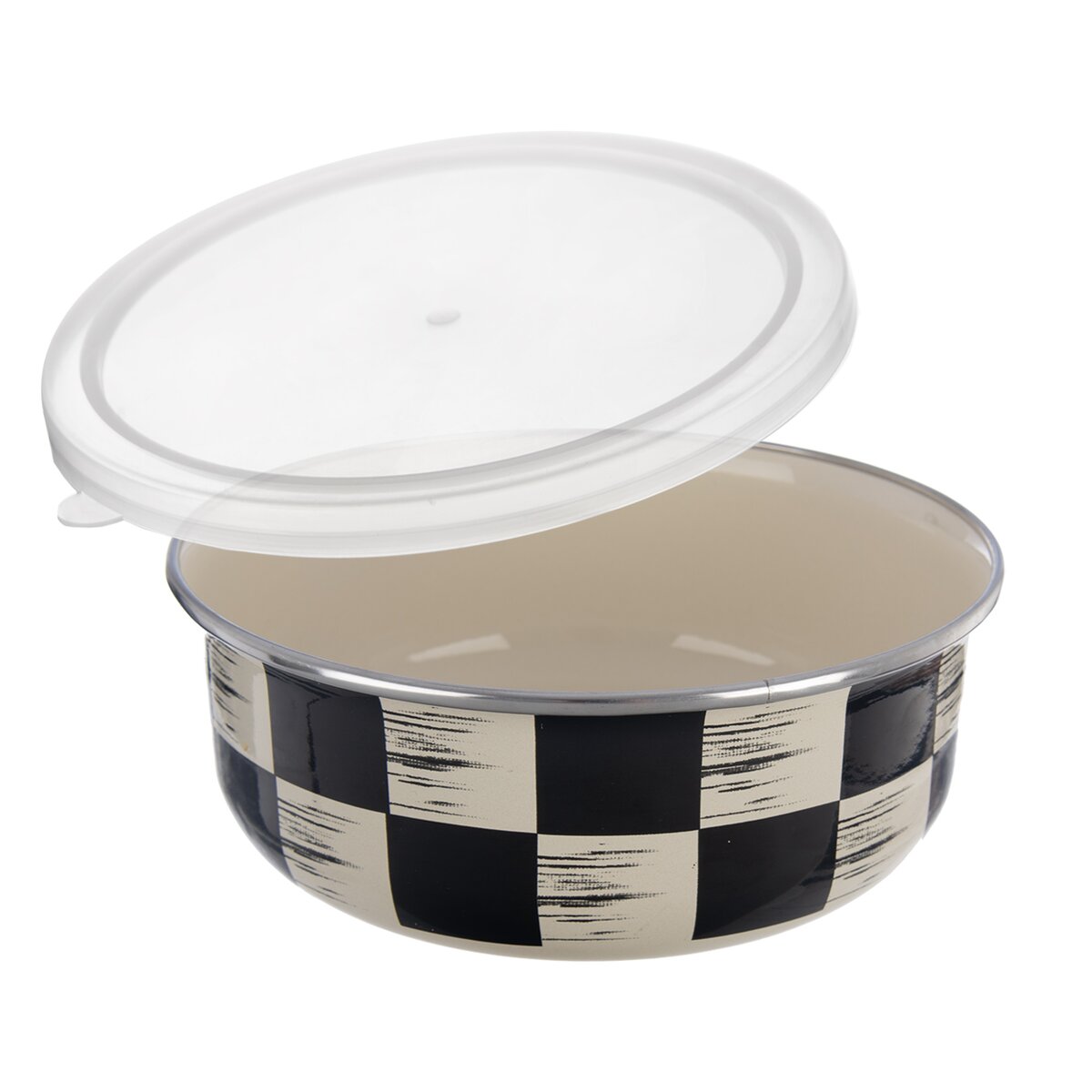 Kód produktu 129233Smaltovaná miska ŠACHOVNICE s nerezovým lemem má objem 1,15 l, je doplněna plastovým víčkem a slouží ke skladování, přenášení i servírování pokrmů.