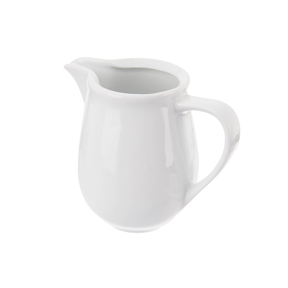 Menší porcelánová mlékovka se skvěle hodí k podávání kávy s mlékem nebo se smetanou. Má objem 300 ml. Bílý porcelán vypadá na stole elegantně, ucho a výlevka usnadňují nalévání.