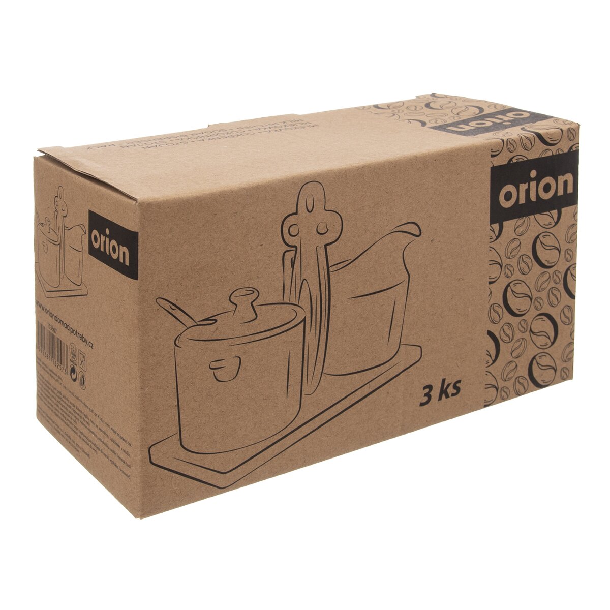 Krásně vypadající porcelánová mlékovka a cukřenka s vloženou lžičkou a bambusovým víčkem. Obě nádoby o objemu 0,28 l jsou usazeny v bambusovém stojanu s dekorativním držadlem.