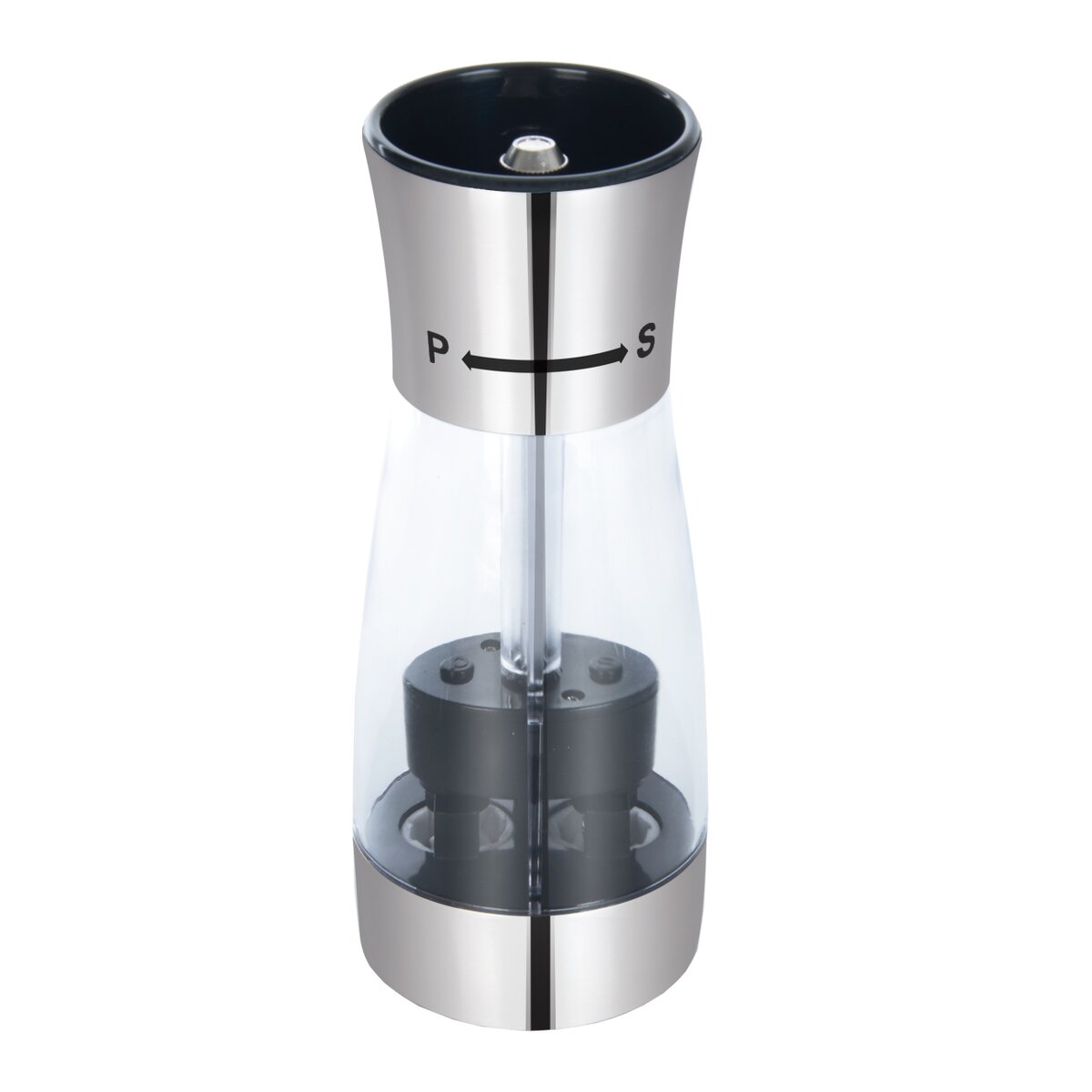 Kód produktu 130163Mechanický mlýnek s oddělenou částí na pepř a sůl, určený k dochucení pokrmů. Má keramický mlecí mechanismus a možnost nastavit hrubost mletí.
