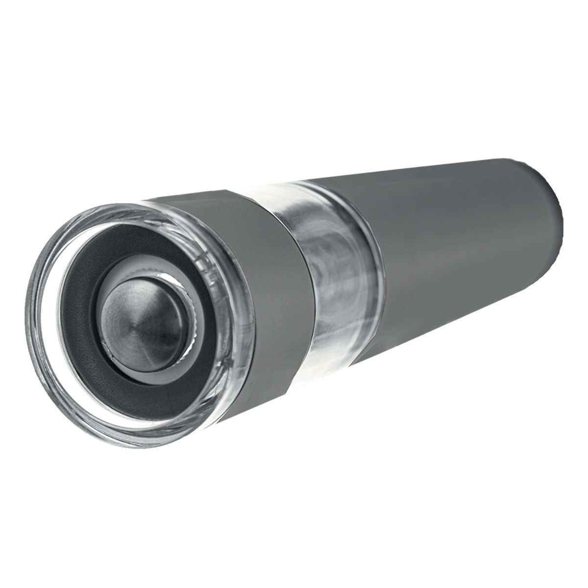 Kód produktu 130225Elegantní tmavě šedý elektrický mlýnek na koření napájený 1,5 V AAA bateriemi, určený k dochucení pokrmů solí, pepřem nebo jiným kořením. Má keramický mlecí mechanismus.