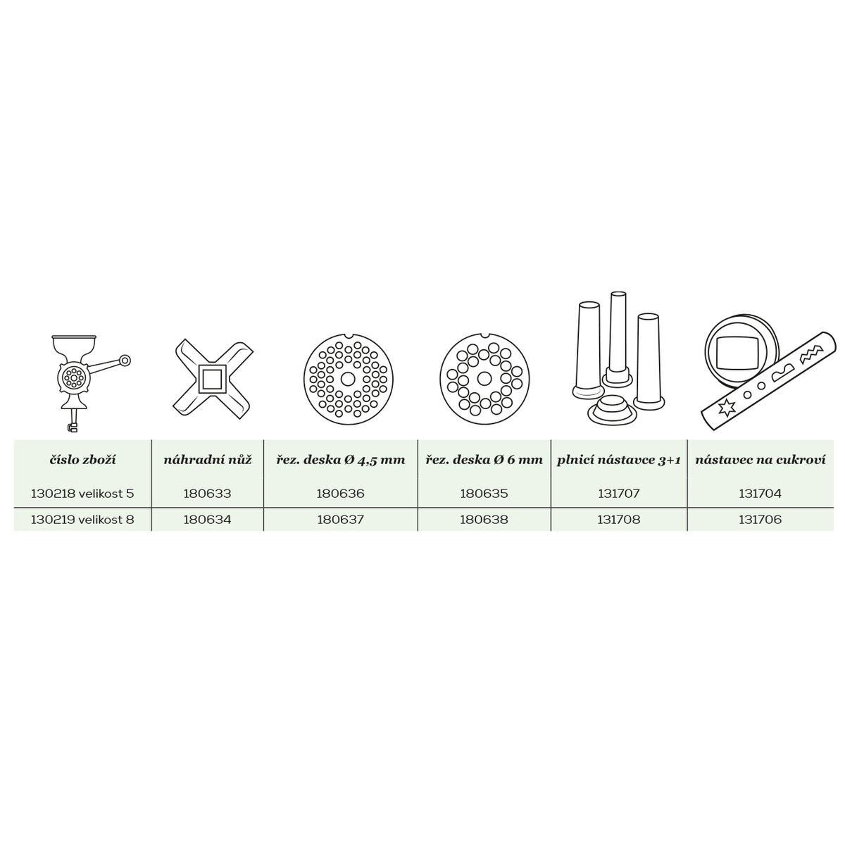 Kód produktu 130219Litinový mlýnek na maso PORKERT velikost 8 pro přípravu sekané, karbanátků, masa na špagety a jiných pokrmů z mletého masa, vyrobený v České republice.