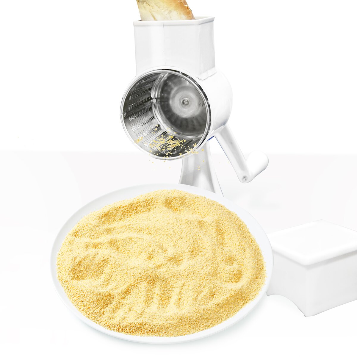 Kód produktu 130304Bílý kovový strojek s bubnovým nástavcem pro přípravu domácí strouhanky z tvrdého pečiva, ale i ke strouhání ořechů, tvrdých sýrů nebo okurků. Česká výroba.