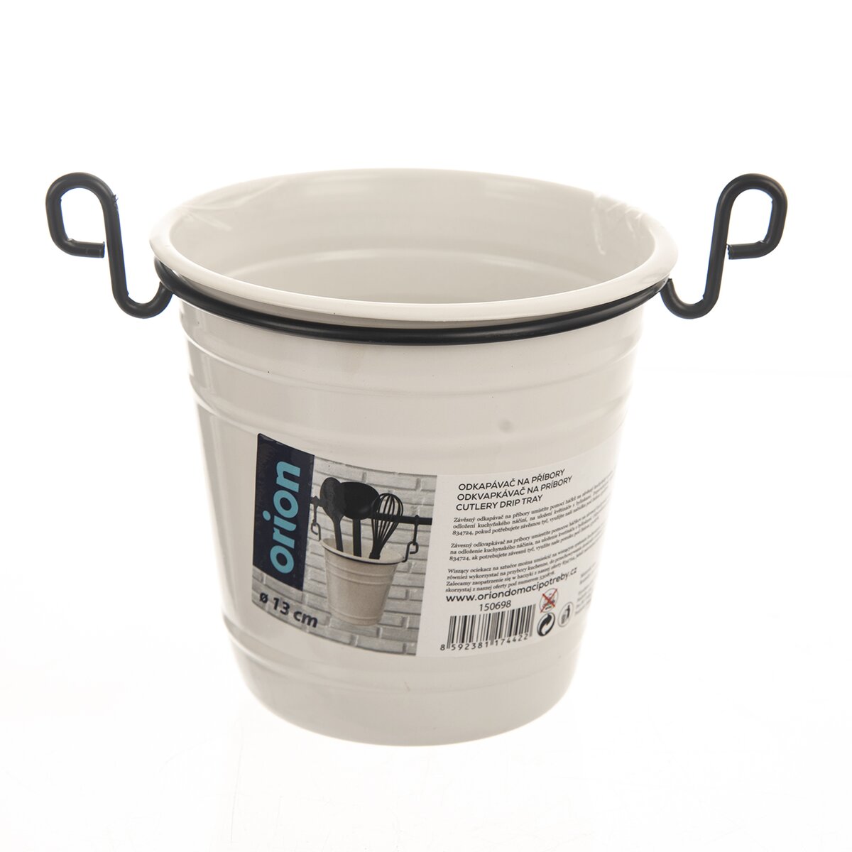 Závěsný odkapávač na příbory umístíte pomocí háčků na závěsný kuchyňský systém. Můžete ho využít také na odložení kuchyňského náčiní, na uložení květináče s bylinkami, jako nádobu pro uchování řezaných bylinek... Materiál: kov. Rozměry: pr. 13 cm, v. 12,5 cm. Doporučujeme opatřit háčky z naší nabídky 834724, pokud potřebujete závěsnou tyč, využijte naši nabídku pod číslem 530878.